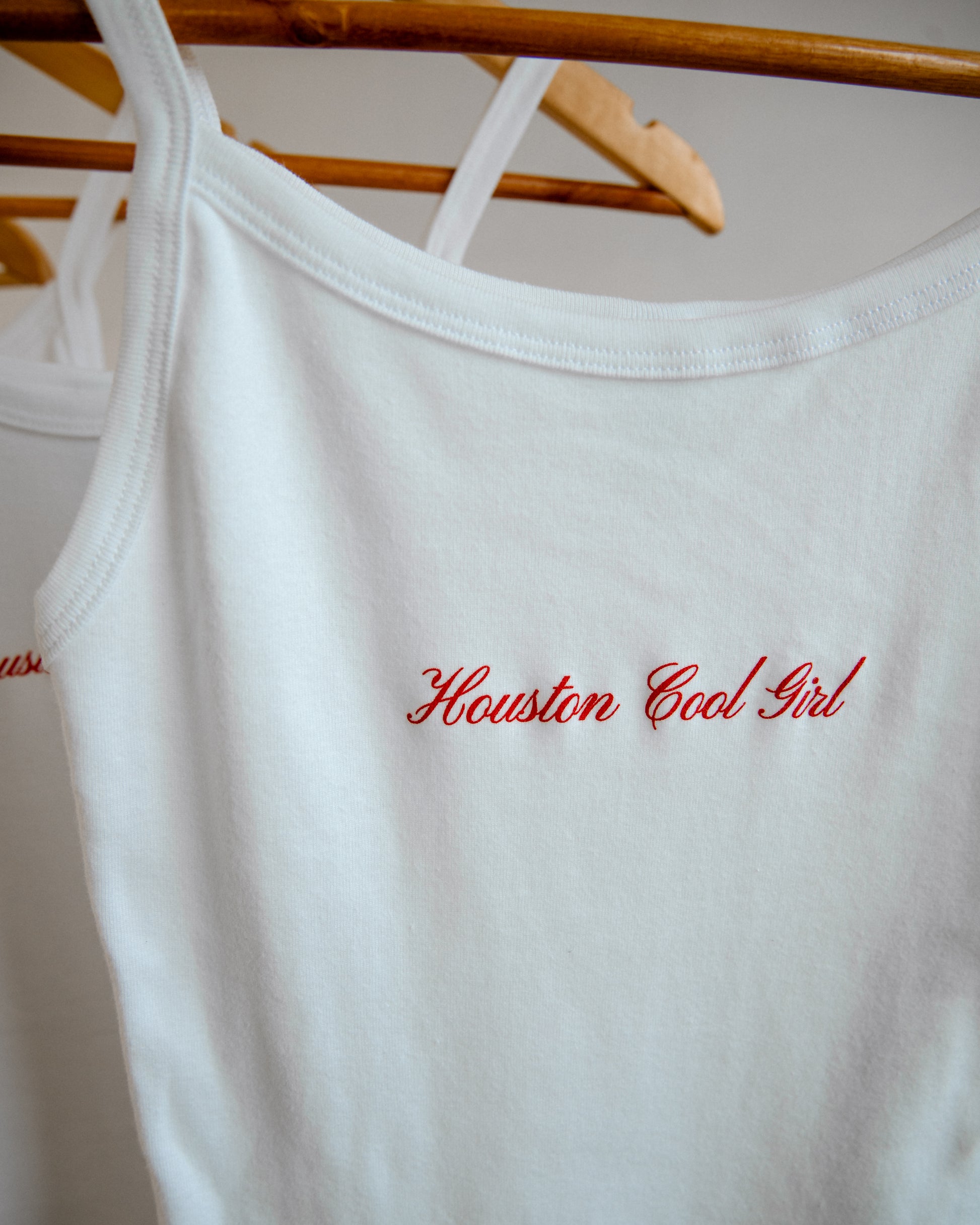 Printed on Los Angeles Apparel baby rib spaghetti tank